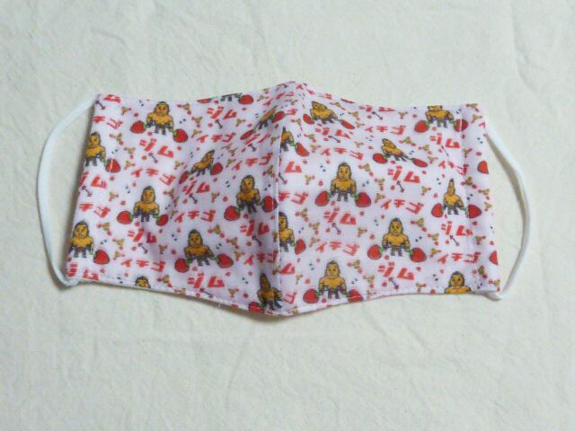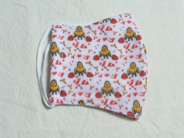イチゴジムハンドメイドガーゼ布マスク【特別ロゴver.】ライトピンク
